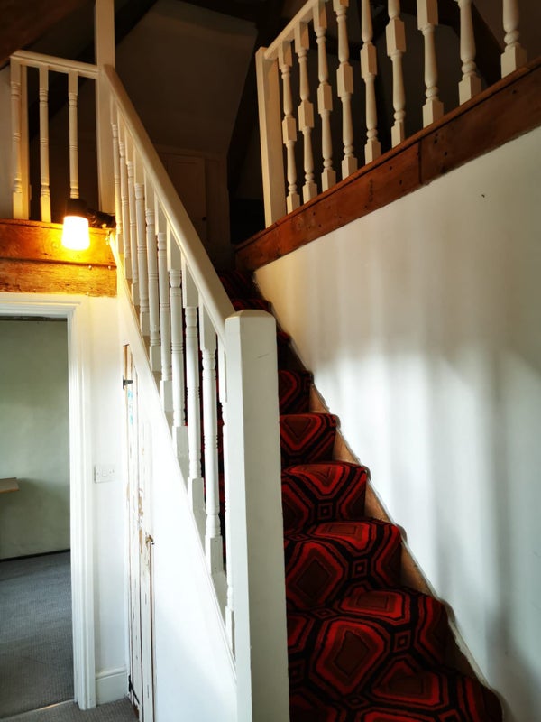 Spacious bedroom upstairs with loads of storage. Living space light and roomy leading to bathroom and a wardrobe.