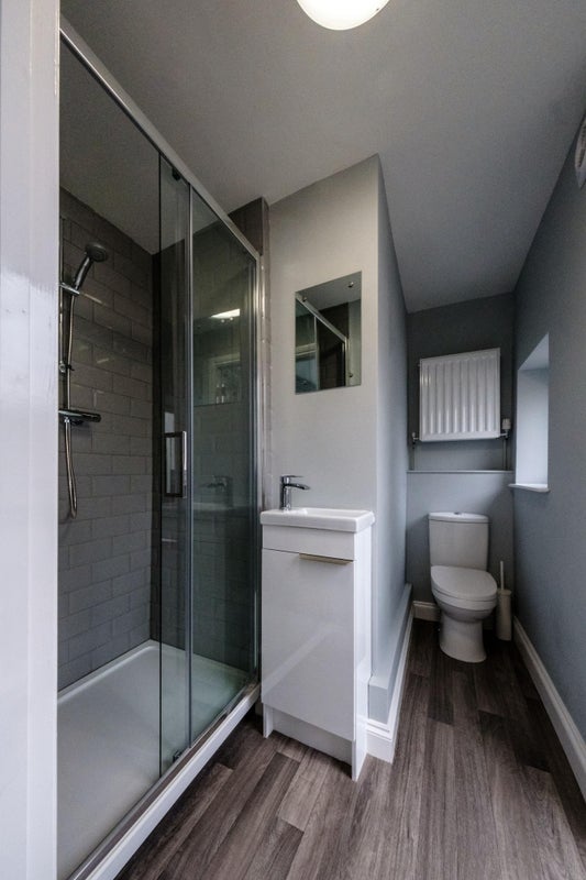 Large bedroom/living area, a lovely bright kitchen diner and shower room.
