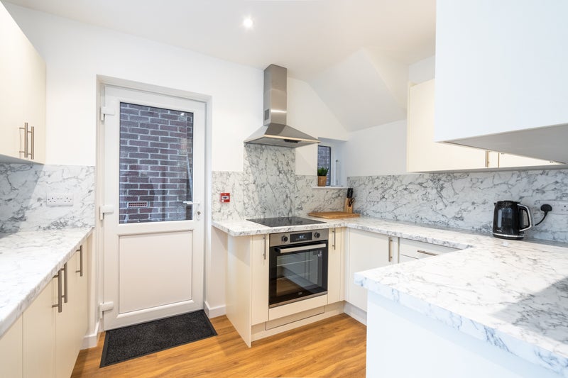 The kitchen has a fridge, freezer, cooker and oven, washing machine, microwave, toaster, cooking utensils, crockery, and cutlery etc.