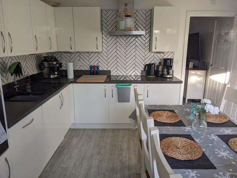 House briefly comprises shared living room, modern kitchen with all cooking items. Nice size back garden. Garage with extra freezer and tumble dryer. Plenty of on road parking on a quiet road. Just off J24, easily walkable to HPC park and ride.