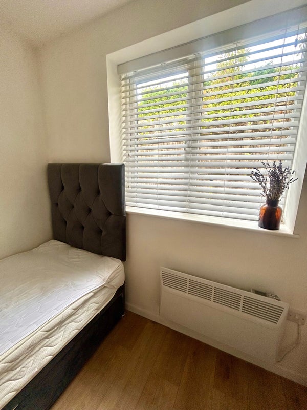 Bright and airy single room in a two bed new bungalow with a patio garden.