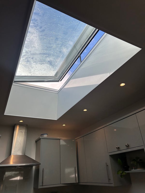 Newly built electric skylight that opens with a blind.