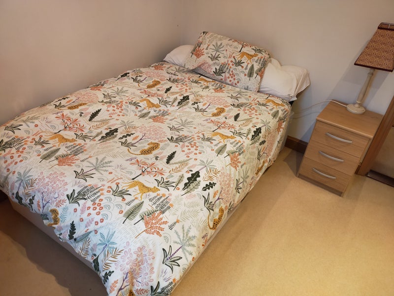 Room in modern detached village house, 5 mins from J23, M5, on edge of Polden Hills village, 10 mins to Bridgwater. Furnished room (can have more or less storage, to suit) and reception areas. Property shared with family and friendly house cat. Fully fitted kitchen with fridge/freezer, fridge, washing m/c, dishwasher. Large south facing garden and patios with views over fields. Plenty of space on drive for parking. Easy 10 min commute to Bridgwater. Coop shop and pub both within 1 mile. 20 mins to Glastonbury. Large house, plenty of room, circulation space. Rent includes all bills. Separate bathroom for lodgers. Downstairs cloakroom. Fast Fibre Broadband.