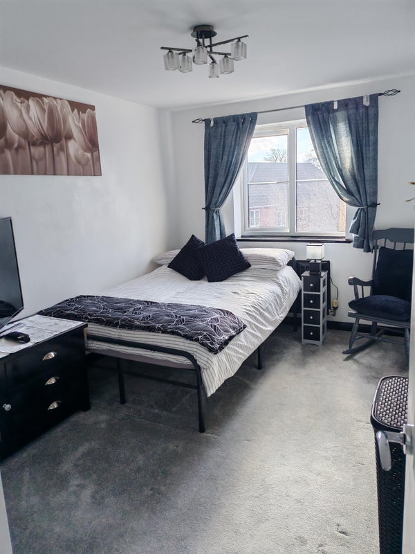 Large Double room with En suite. Fully furnished with large Tv which includes Netflix and Disney. Just been redecorated with new bed and mattress. 3 wardrobes. All bills included. With parking space. Must be a non smoker and likes cats. I have 1 old cat.