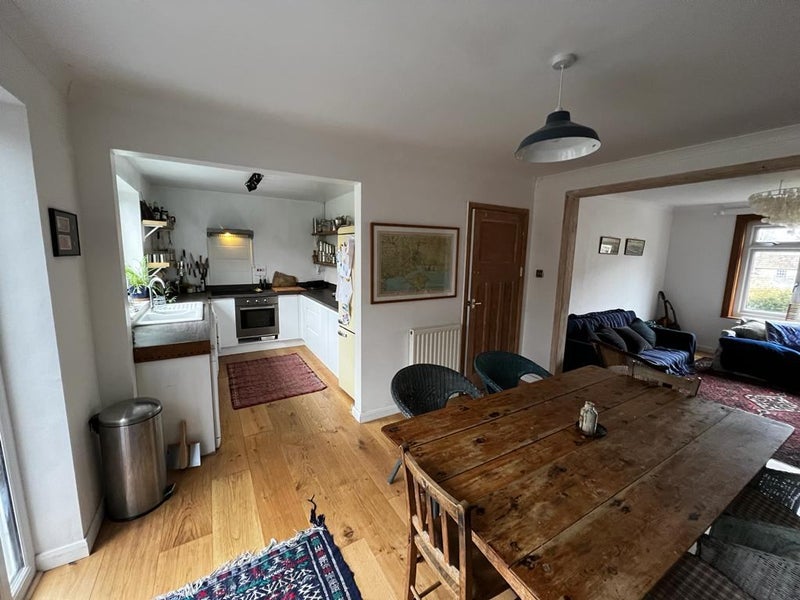 the sitting room, dining room and kitchen are open plan downstairs.