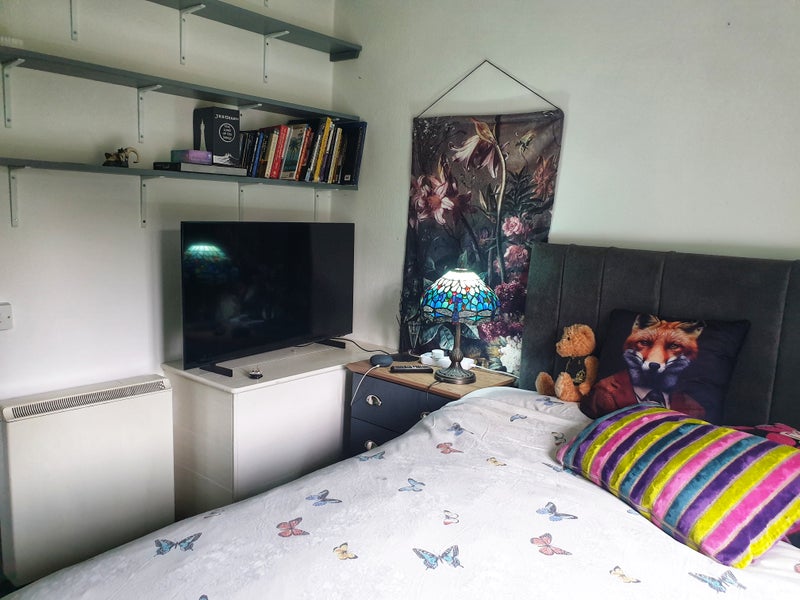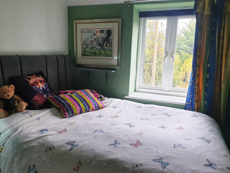 Small double or large single with a double bed, whichever way you want to see it! Shared bath/shower room with myself opposite your bedroom and use of large front and back garden and kitchen. Parking is on the road, about 2 mins walk. There is also a cat.