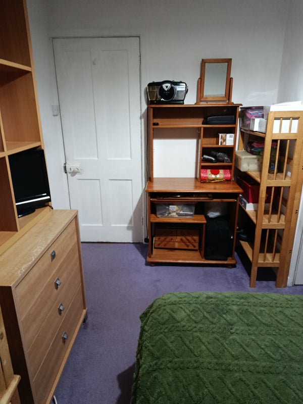 The room has a comfortable double bed, wardrobe and a proper desk/working space – ideal for someone who works from home or needs a quiet place to study. You will share the bathroom, lounge and kitchen with me and my husband; we are both quiet, spend a lot of time on our computers and value a peaceful home.
