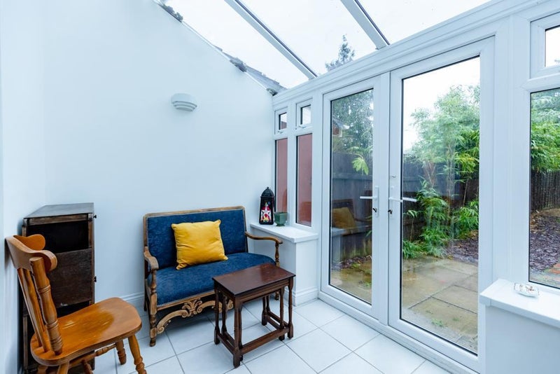 There is a communal garden at the back of the house and a drive way for two cars at the front of the house.