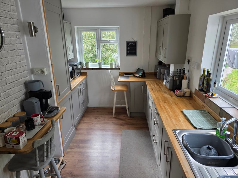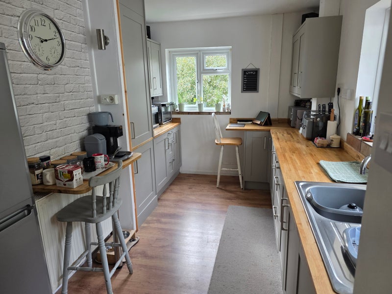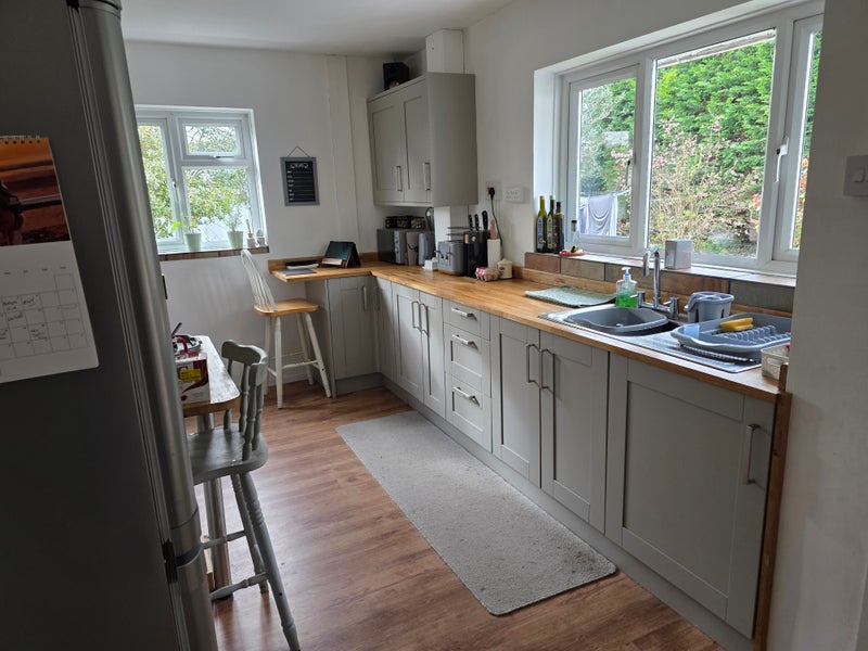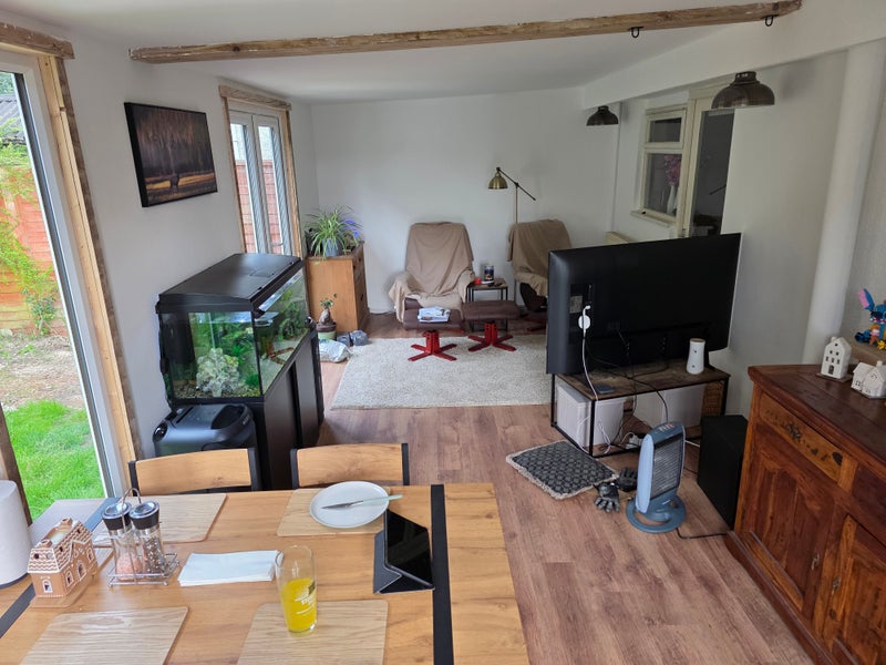 2 living rooms all equipped etc. Shower room, equipped kitchen, rear private garden, some space in garage for bikes if required
