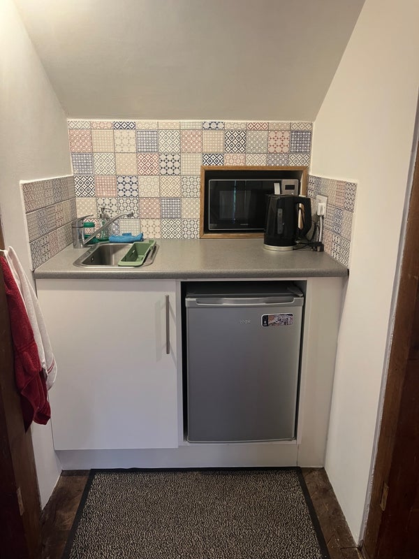 There is a well-equipped kitchenette with a microwave, air fryer, toaster, kettle, fridge, and a single hob – ideal for simple meal prep. The annex also has its own private bathroom with a shower, sink, and loo, plus a separate private entrance for convenience and privacy.