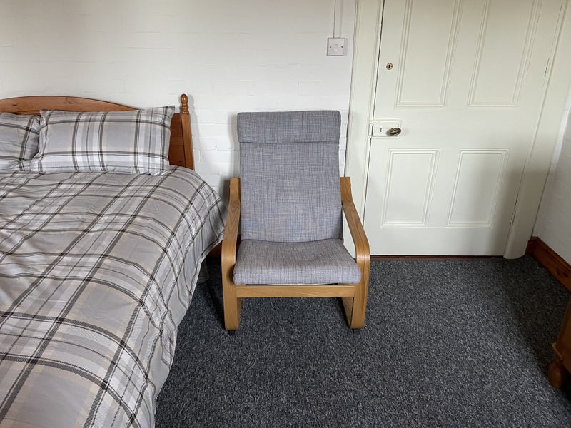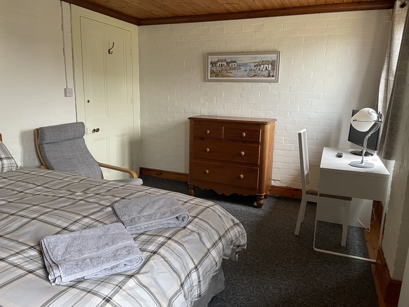 Large double bedroom with quality mattress and new bedding. Freeview 24' TV, hair dryer and towels included in room. The bathroom is next door and includes towels, bath mats and cleaning products. Your own fridge is located in the kitchen and shares with only one other person.