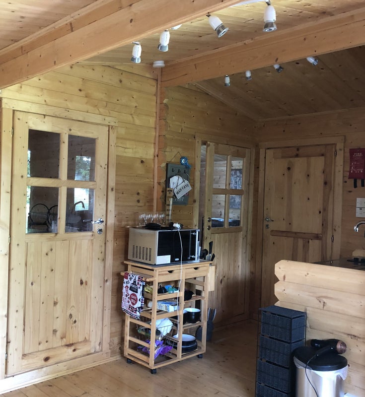 The Cabin has 2 double bedrooms or one room can be used as an office, a lounge/kitchen area and Shower room.