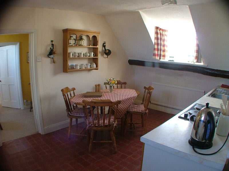 Two king size bedrooms, bathroom , sitting room with arched ceiling, separate kitchen/diner. Loads of character and space.