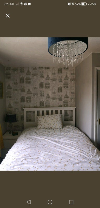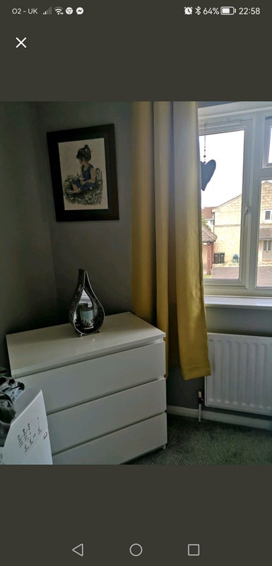 The room includes a comfy double bed, bedside table, double wardrobe and a chest of drawers, it is freshly decorated. There is room for a small desk (not provided)