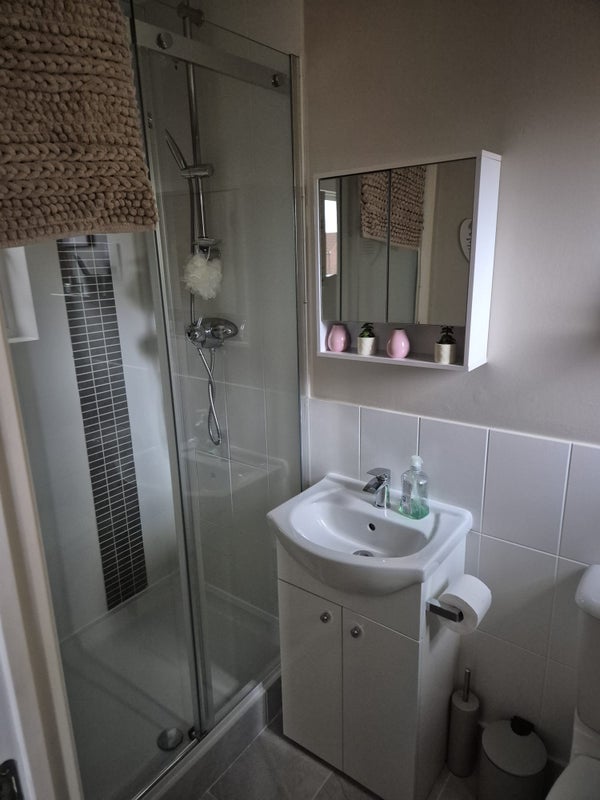 Double room with own bathroom in a shared, clean, modern, spacious 4 bedroom family home on the Nature Reserve and within walking distance to the town center and marina, close to shops, bars, pool and gym. Has parking space. Married couple with one child aged 17 years, a Cockerpoo and cat.