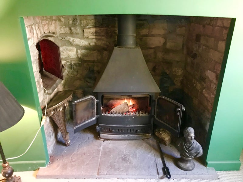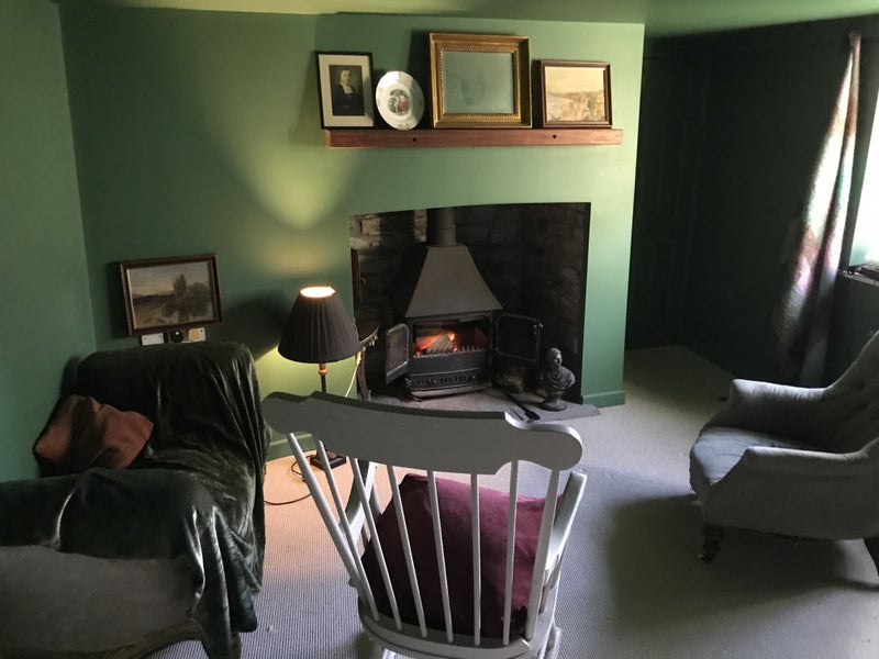 Shared Sitting room, log burner, decent sized dining room off kitchen with fire place