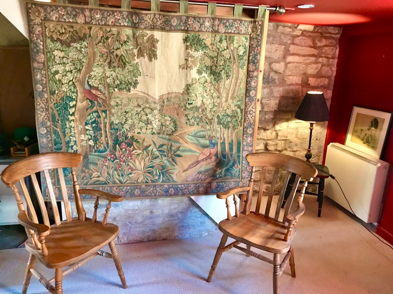 Exposed historic stonework. Stripped and restored elm floorboards to one bed room.