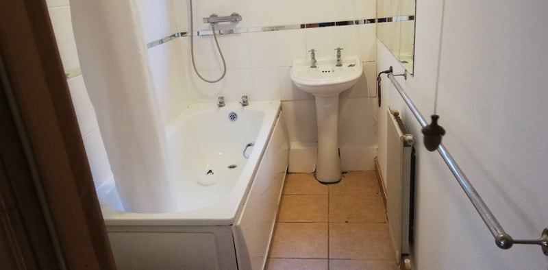 The bottom floor of this house consists of a double bedroom with a private bathroom, an open-plan kitchen diner /sittingroom shared with an upstairs lodger, with an open fire..