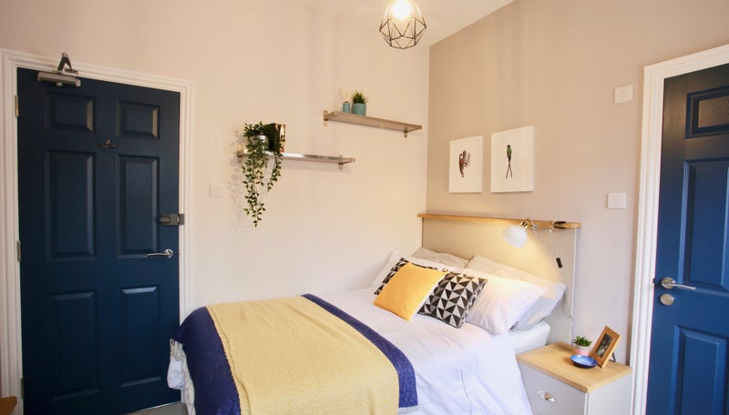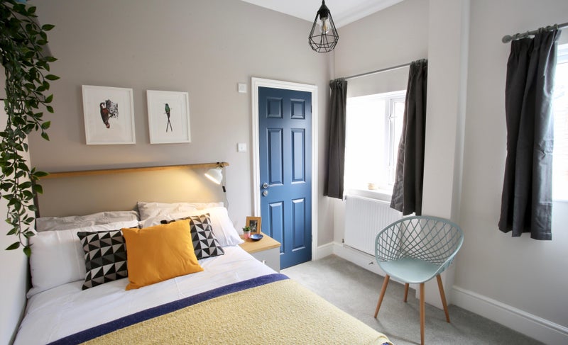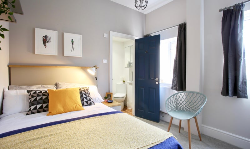 All rooms are en-suite with plumbing deigned for a house with many bathrooms so you won’t experience a loss of pressure because someone somewhere else is showering. All rooms have a tv point and plenty of sockets. All the rooms are furnished with beds with draws underneath, a chest or draws, and a bedside cabinet and wardrobe. The available room, is on the ground floor at the back of the house looking over the south facing garden. The room will be freshly decorated before you move in.