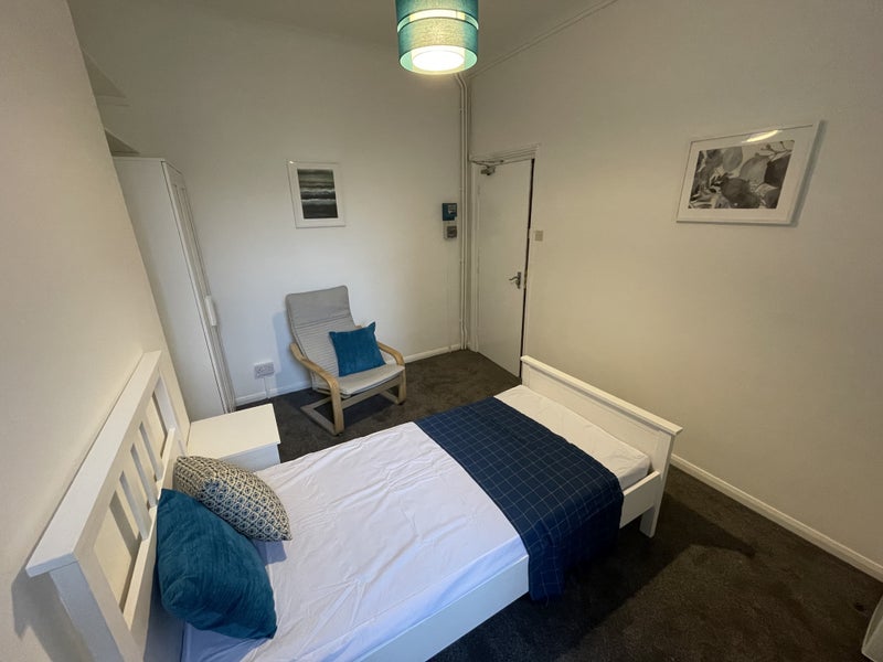 The room is fully furnished and ready to move into. There is a shared kitchen as well as your own fridge in the room. Shared shower room. Great fast fibre broadband and utilities included in rent (electricity for the room is metered separately).