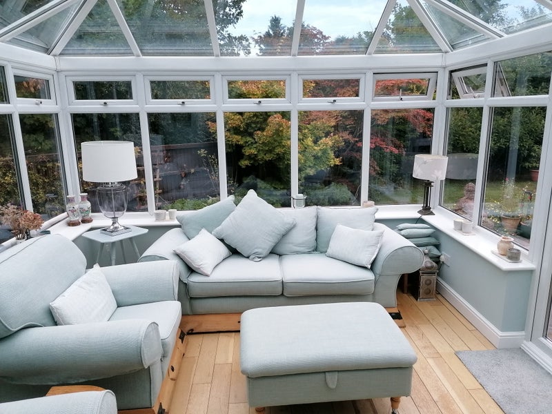 The room has lots of storage and a table/chair. It has it's own fridge, kettle and microwave in the utility across the hall.