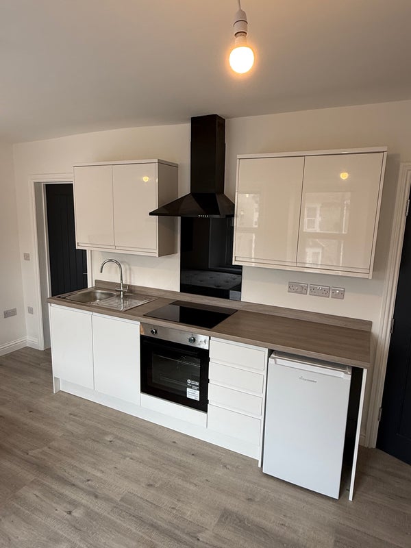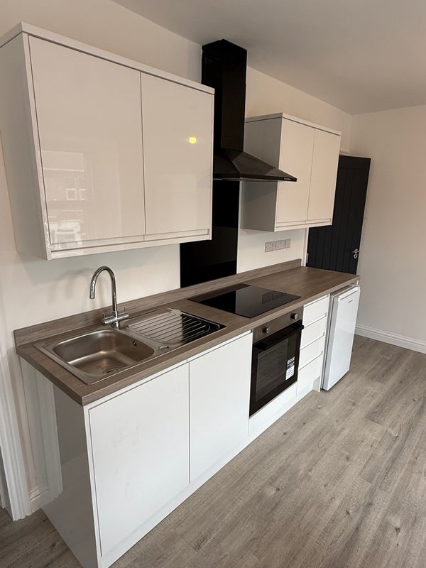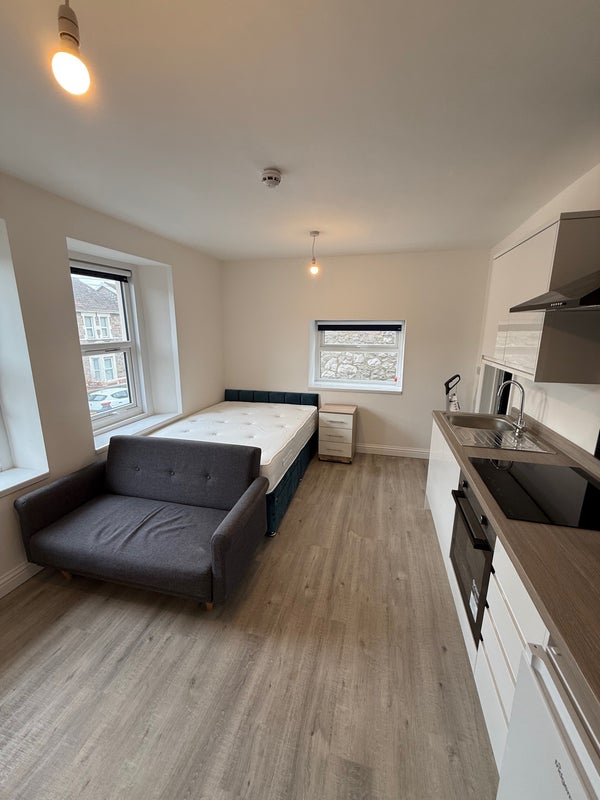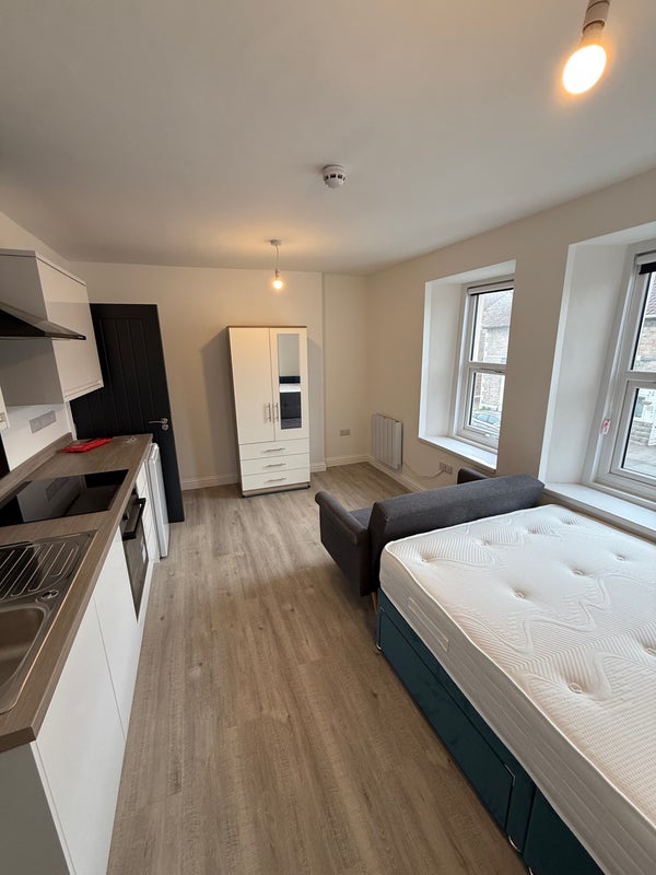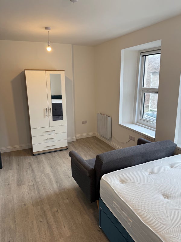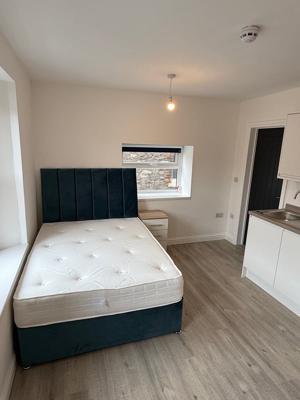 Studio is newly refurbished to an excellent standard, with brand new Double Bed, New Bathroom & Kitchen. High Speed Fibre WiFi. Features Double Bed, Wardrobe, Drawers.