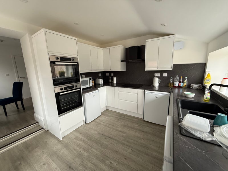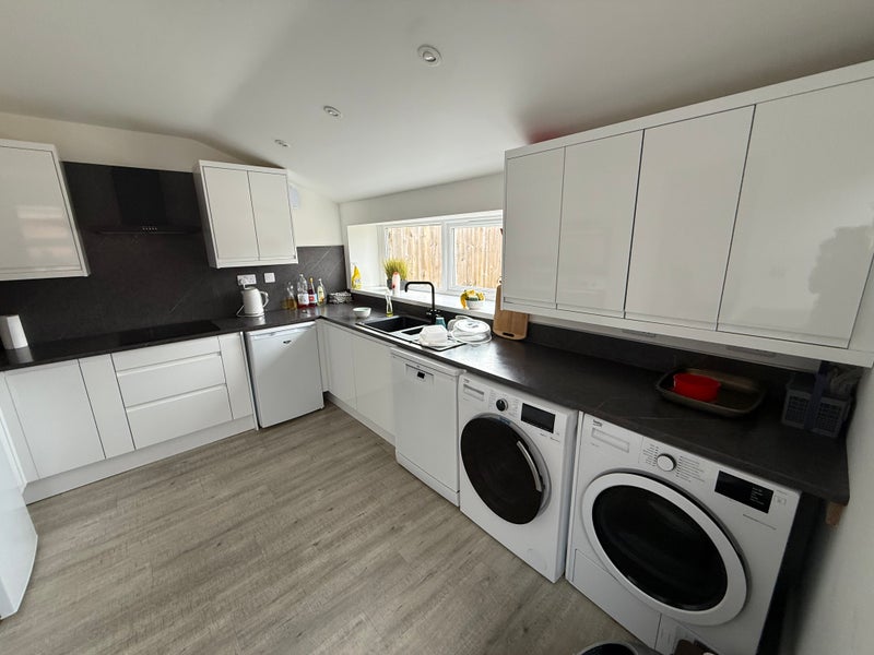Lots of fridge, freezer and cupboard space in the recent upgraded kitchen. There is also a washing machine and tumble dryer.