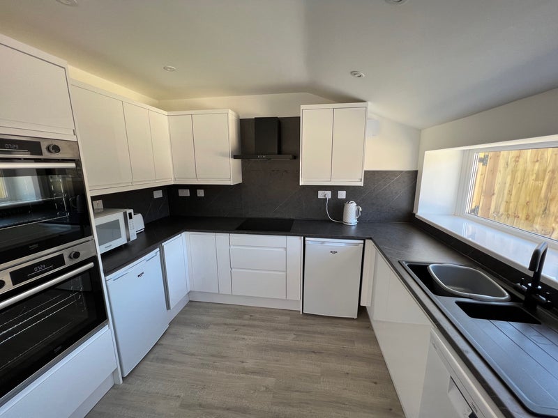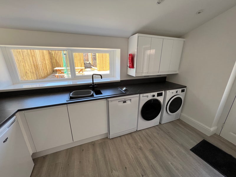 Lots of fridge, freezer and cupboard space in the recent upgraded kitchen. There is also a washing machine and tumble dryer.