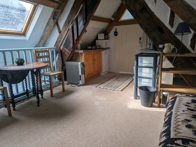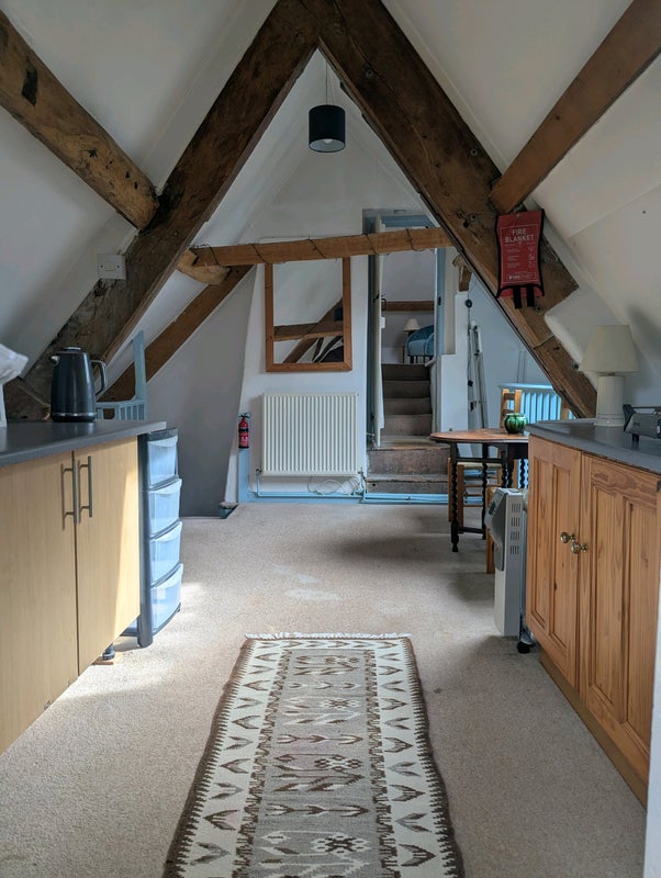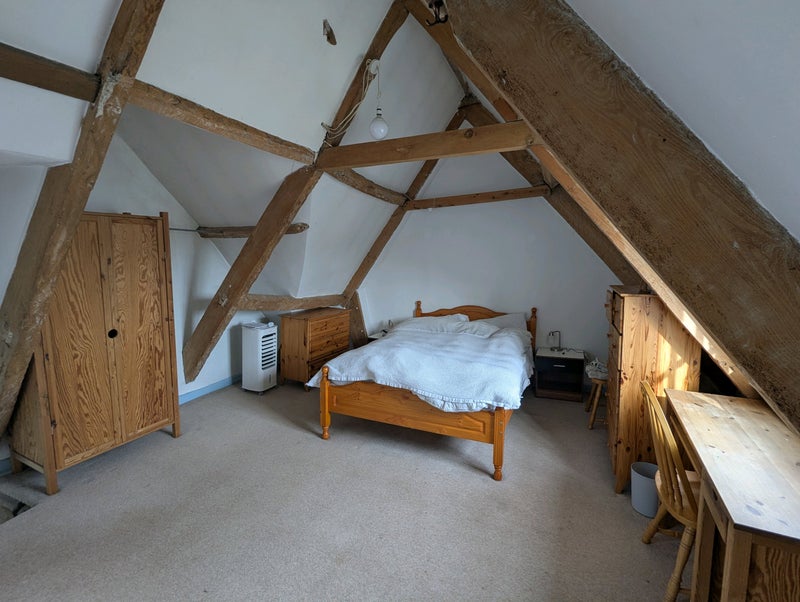 The accommodation is very spacious (580 sq feet) and comprises the top floor of a large period house. It has a large bedroom, sitting room/kitchenette and large bathroom with bath and shower. I'm away with my work a lot a require a self sufficient honest and reliable person. My previous housemates have stayed for quite long periods of time of 5+years. My current tenant is moving as he is buying his own property.