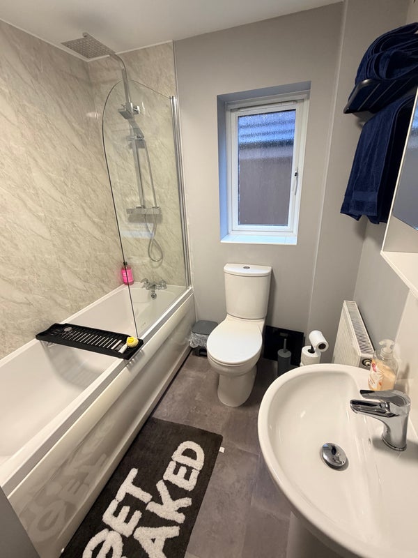 The bathroom is located next to the room and is shared, with the added benefit of an additional downstairs toilet. You’ll also have access to a well-equipped kitchen and a comfortable lounge with a large TV.