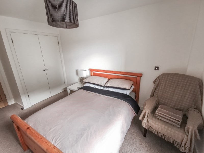 The double bedroom contains double bed & mattress, large built-in wardrobe with shoe rack & wooden hangers, bedside tables, wall mirror, wall-mounted smart TV & sitting chair. The occupant will also have access to their own private bathroom.