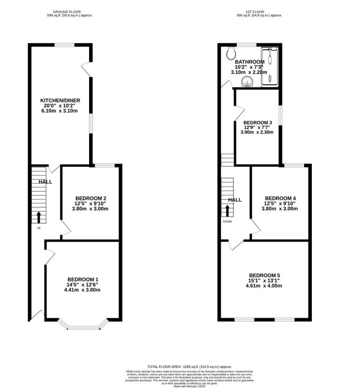 All 5 bedrooms are furnished with double beds, cupboards and a chest of draws as well as 1 bathroom with shower and bath.