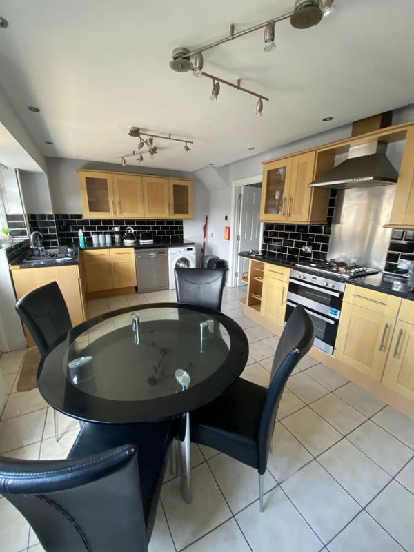 Beautiful Modern 5 bedroom house Pentwyn area. Near bus stop and local amenities Inc. leisure centre The house is fully furnished with a fully equipped kitchen with washing machine and separate tumble dryer, gas hob, fridge freezer. Kettle, toaster, iron and ironing board, Hoover. Gas central heating. Lounge is being converted to a spacious double bedroom.