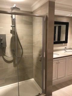 Newly fitted Bathroom includes a bath, separate shower and double sink vanity unit. All towels and bedding are provided, along with hairdryer and iron.