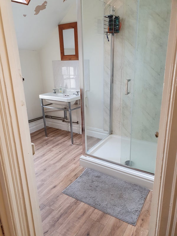 Refurbished in 2021 the room has a studio kitchen, lots of storage, a huge sofa/bed, dining space and a double bed. There's a small laundry room and a shared bathroom on each floor. It would be ideal for one person or possibly a minimalist couple! For double occupancy the rent is £550 a month plus bills.