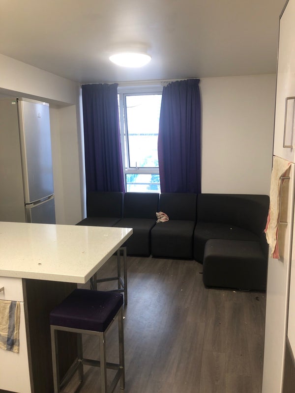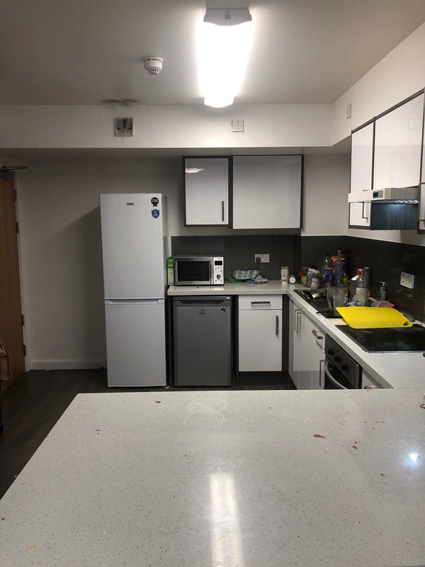 The kitchen area is shared with 5 other kind and welcoming flat mates. With all the essentials required. (microwave, oven, kettle, cupboards etc.)