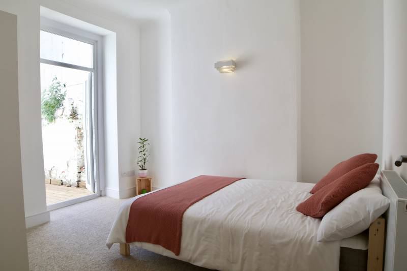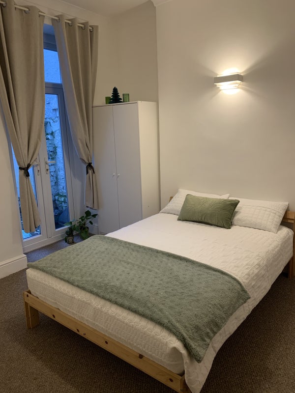 The room itself is downstairs and has a double glass door to the back garden.. The room includes a double bed and a wardrobe. Many plug sockets available in the room with integrated USB ports.