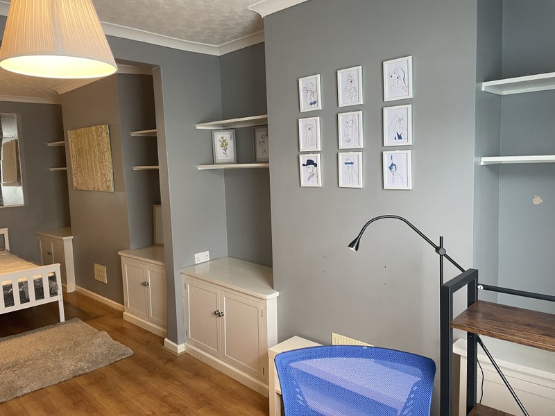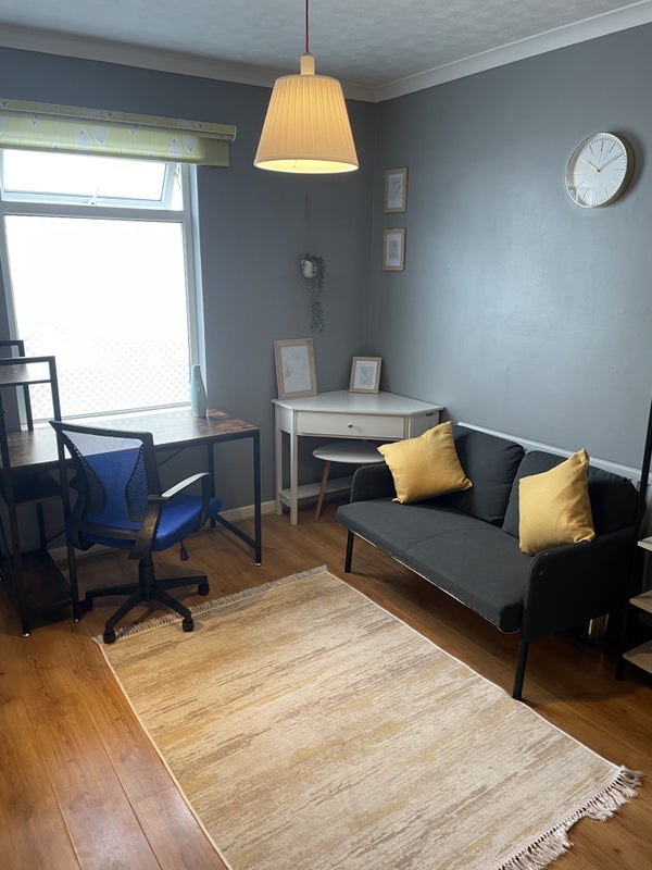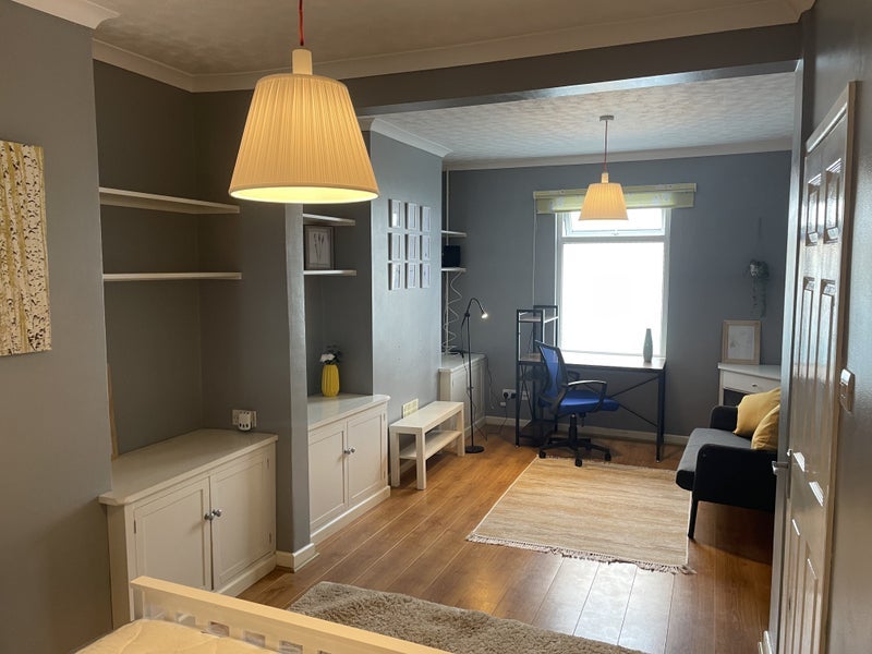 The Cardiff city center is only 10 minutes walk away, and the Cardiff University main campus is 20 minutes walk away. The room is fully furnished, with a double bed, a wardrobe, a desk, and a chair.