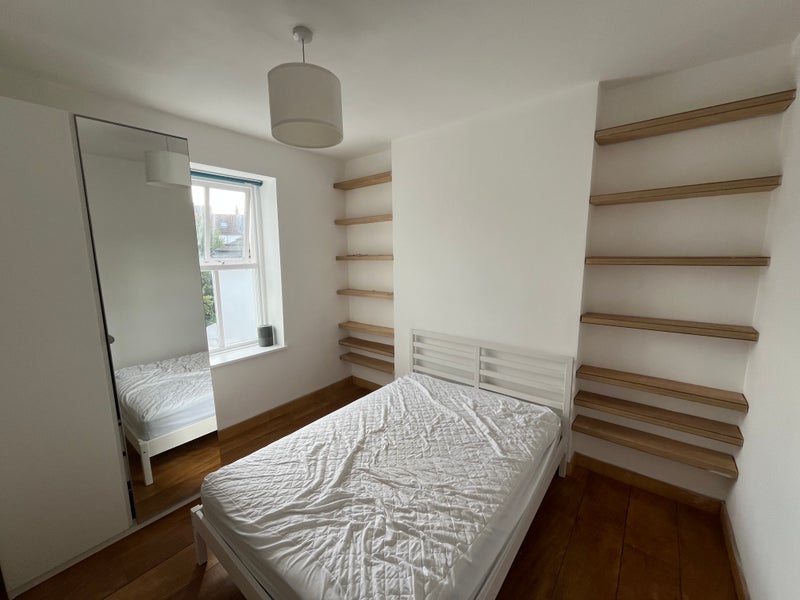 The room has a very comfortable double bed and plenty of storage. The bed can easily be repositioned to fit a desk in the room.