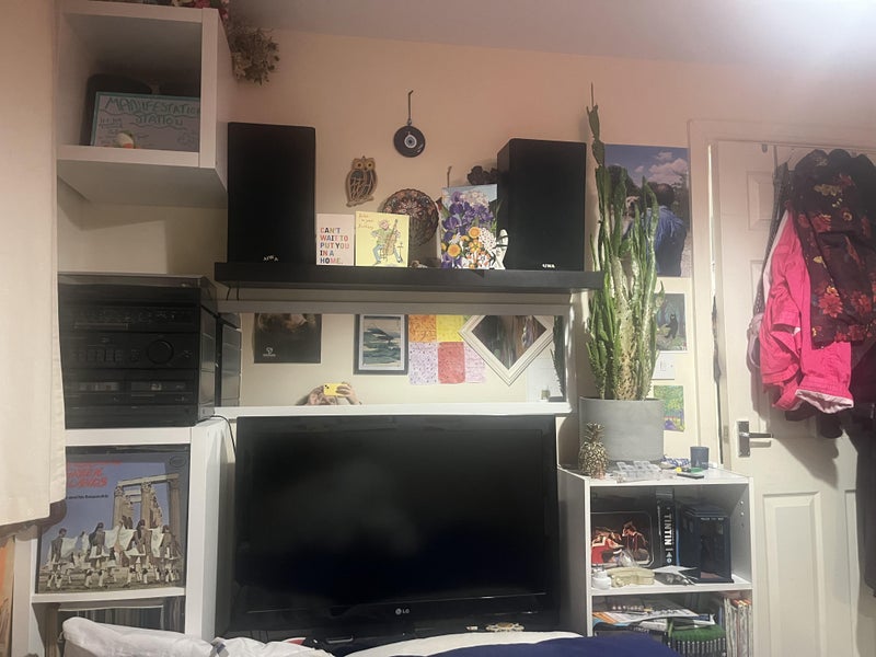 The bedroom has under-bed storage, a 2 month old mattress and a beautiful wooden wardrobe. There are shelving units and a TV I will happily leave if you need them also.