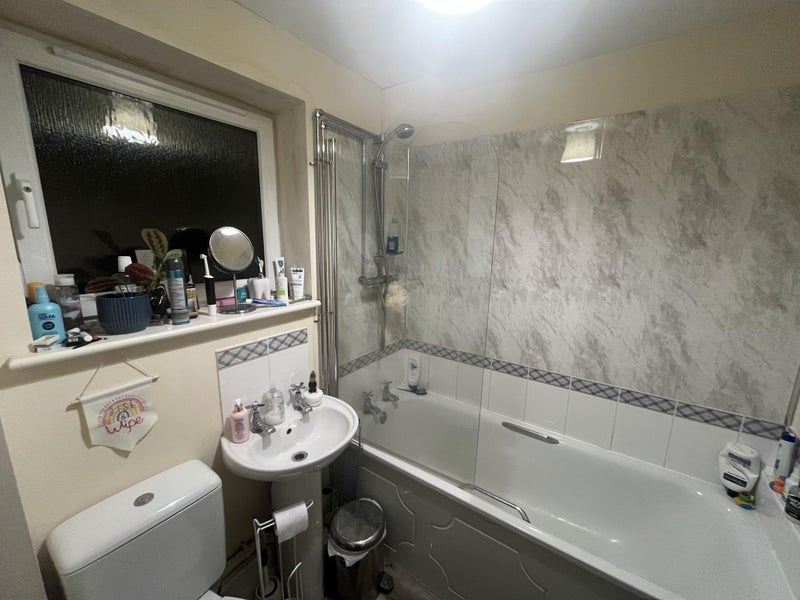 There is a designated car parking spot in the garage on the ground floor of the building. The other occupant doesn't drive so this is always available. The flat has 2 bathrooms, one for each occupant. The bathroom has a newly fitted shower and a bath tub.
