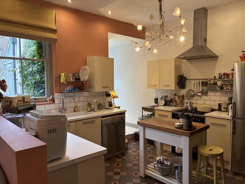 Large, shared kitchen-diner with sitting area and access to rear garden. All cooking facilities, fridge/freezer, micro wave oven, dishwasher, washing-machine.