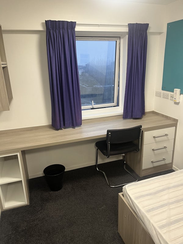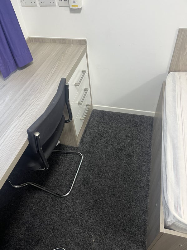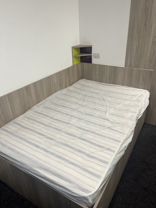 Double bed, desk and chair included.