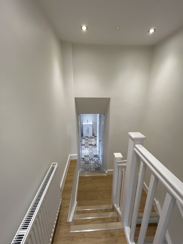 There is a large double bedroom on the ground floor with a good sized bathroom on the half landing where there are also the washing machine and boiler cupboards.