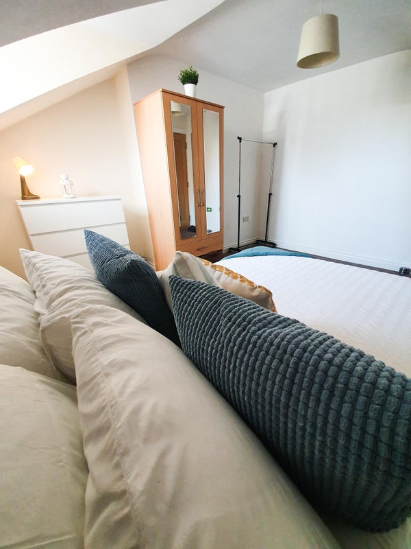 Situated quite literally five minutes walk from the vibrant city centre, this fully furnished room comes with double bed, chest of drawers, wardrobe, desk, chair, and shelving.