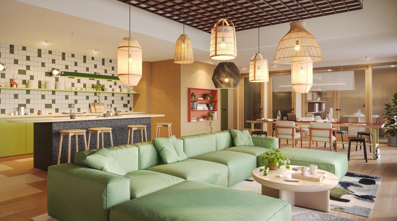 * Complimentary access to an on-site gym, co-working spaces, resident's lounge, café and rooftop terrace coming Summer 2026