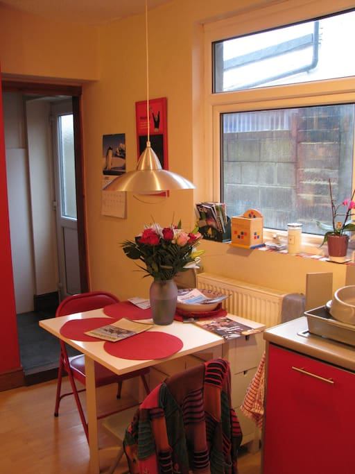 Full use of the rest of the house including wi-fi, washing machine, kitchen, tv and living room. The bathrooms are downstairs, bedrooms on the first floor