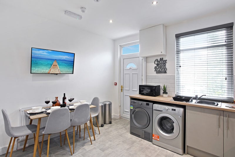 Ground floor - large kitchen/dining room (with all white goods and all essential kitchen crockery, utensils and cookware), large stylish living room.