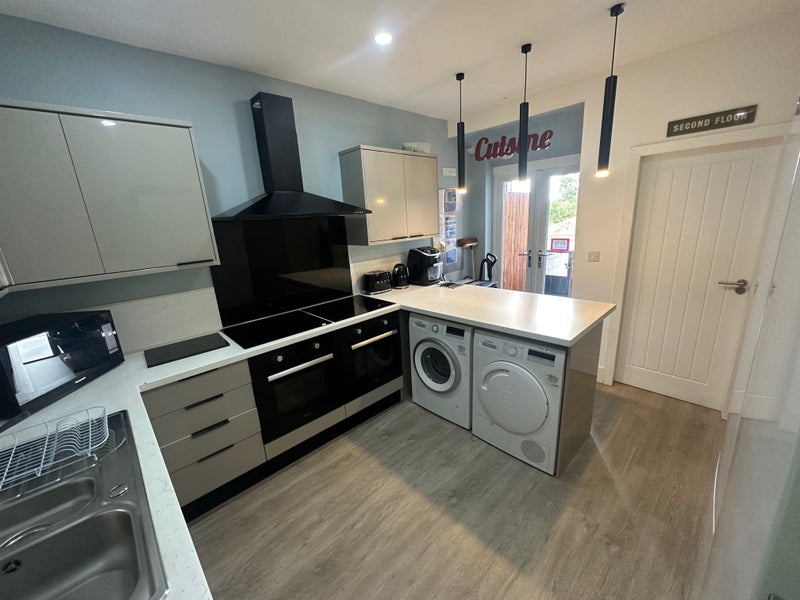 • Large kitchen/diner with 2x hobs, 2x ovens & 2x XL fridges. Commercial quality 9kg washing machine, separate 9kg tumble dryer, all superior appliances. Lots food cupboards.