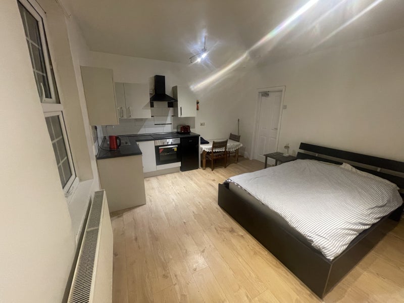All inclusive studio on 1st floor with double bed wardrobe and kitchen. Ready to move in.